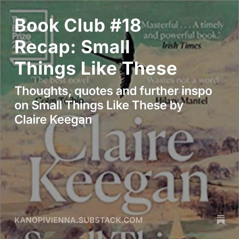 Read our recapSome thoughts, quotes and more inspiration for "Small Things Like These" by Claire Keegan